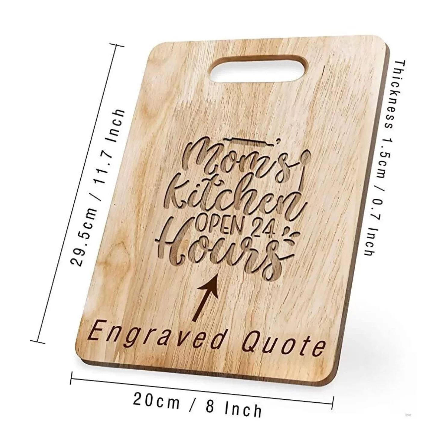 MATERIAL-SIZE: Rubber Wood, Size : 29.5x20cm, 1.5cm Thick, Type: Engraved Chopping Board Wood